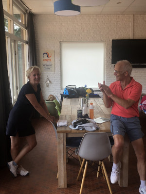 Klein maar fijn, zo zou je het 65+ toernooi op dinsdag 26 juli jl kunnen omschrijven, dat voor het eerst sinds twee jaar weer werd georganiseerd. 19 deelnemers streden mee om de wisseltrofee te bemachtigen. Die werd dit keer glansrijk gewonnen door een vrouw, en ook dat was al weer een tijdje geleden (in 2016 won Ria Debets). De trofee bestaat sinds 2002 en is geschonken door wijlen Tinus Timmer. Winnaars worden op de sokkel bijgeschreven. Oudste deelnemers waren twee heren van 82 jaar, de oudste dame was 80.