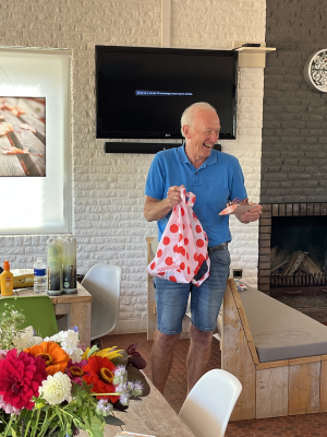 Hans Stoker had een leuke attentie voor de organisatoren en bedankte hen hartelijk voor hun inzet. De afsluitende borrel duurde tot in de avond. Wat een gezelligheid!