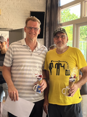 Naast een grappige beker ontvingen de deelnemers een bon voor ijs bij Rozenboom en een "minicruise" over de IJssel. Vooral die laatste prijs veroorzaakte grote hilariteit: een overtochtje met de pont naar Deventer en terug! En dan waren er ook nog "bekers" voor de jongste en oudste deelnemer: Alex van der Galiën (37 jaar, tennist sinds een paar maanden) en Gerrit Bosch (81 jaar, tennist sinds 1975).