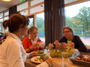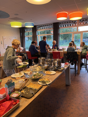 Na afloop werd er (inmiddels bijna traditiegetrouw) gedineerd met z'n allen. Het was weer smikkelen en smullen van alle zelfgemaakte gerechten, dit keer verzorgd door Reina van Mourik, Carolyn Koenders, Heleen Deelstra, Josefine Kruitbos en Breg van Baars. Het clubhuis was in herfstsfeer gebracht, een knapperend haardvuurtje, waxinelichtjes en pompoenen. Ook waren er nog kleine prijzen voor de beste scores: Rinus Langevoort won de eerste, Breg van Baars de tweede en Gert Buitenhuis de derde prijs.