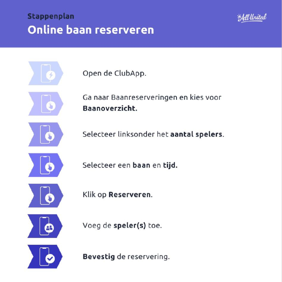 Vanaf woensdag 21 augustus voegt AllUnited een nieuwe module voor het reserveren van banen toe aan de ClubApp.
